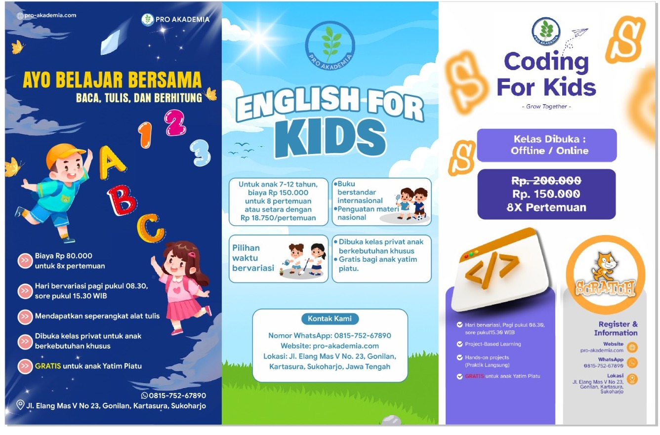 Selamat datang di Pro Akademia, tempat yang cocok untuk mengembangkan Bahasa Inggris anda : membaca, berbicara, dan {Reading, Speaking, dan Writing}.